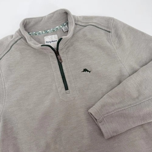 Tommy Bahama 1/4 Zip Pullover Marlin Fleece Gray Men's L NWOT