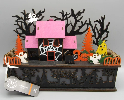 MARTHA STEWART LED LIGHTED DIE CUT WOODEN TWO TIER HALLOWEEN HAUNTED VILLAGE NEW