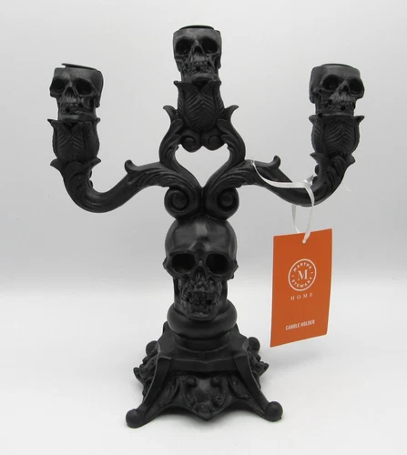 MARTHA STEWART BLACK SKULL CANDELABRA/CANDLE HOLDER HALLOWEEN PROP DÉCOR NEW