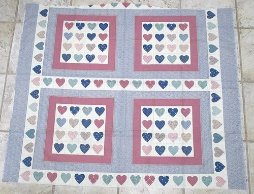 Vintage Heart Quilt Fabric Panel 38x45” Cotton DIY Quilt Top Pillow Crafts