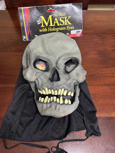 1990s NU SKIN HALLOWEEN MASK HOOD W/ HOLOGRAPHIC EYES (NOS ON CARD)