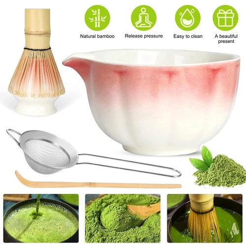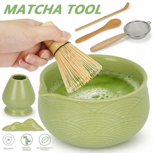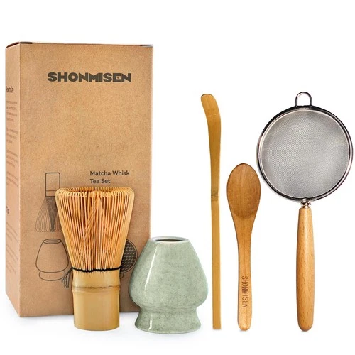 Shonmisen Traditional Matcha Tea Whisk Set with Regular size, matcha green