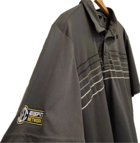 Travis Mathew Coto Performance Polo Mens XL Gray Chest Stripe Golf SEC ESPN LOGO