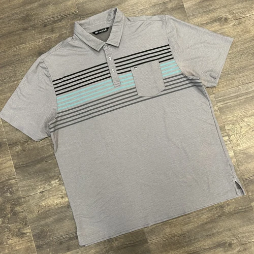 Travis Mathew Men’s Golf Polo Grey Stripe Pocket NO SIZE TAG (63)