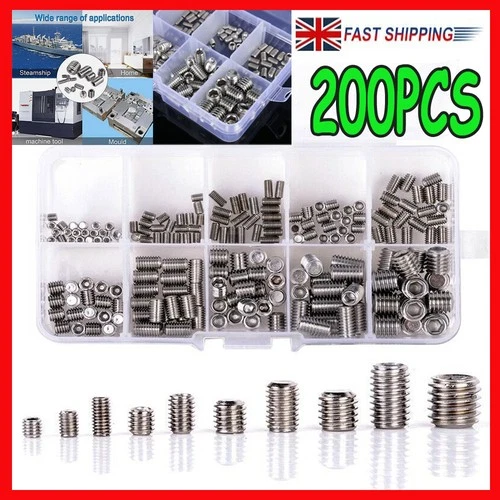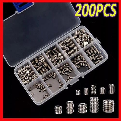200X Stainless Steel Allen Head Socket Hex Set Grub Screw Assortment Cup Point