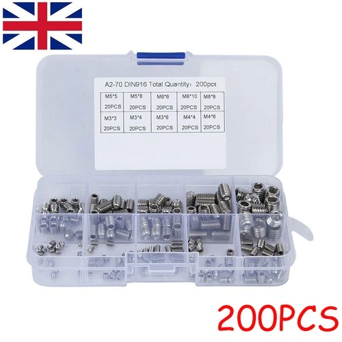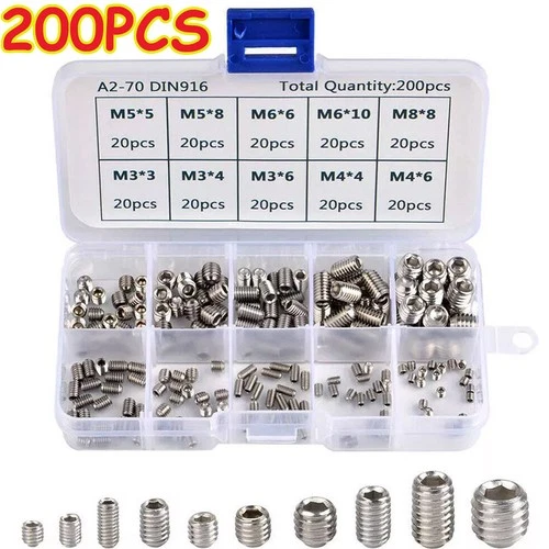 200Pcs Allen Head Socket Hex Set Grub Screws Assortment Cup Point M3 M4 M5 M6 M8