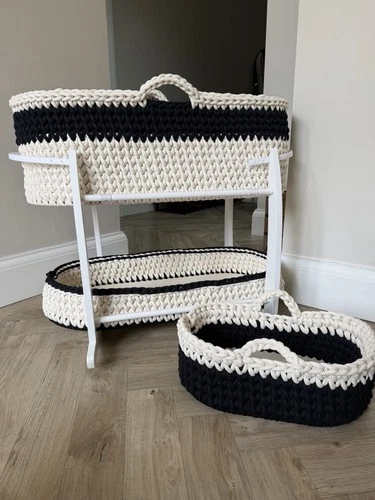 Handmade Crochet Moses Basket Set With Stand