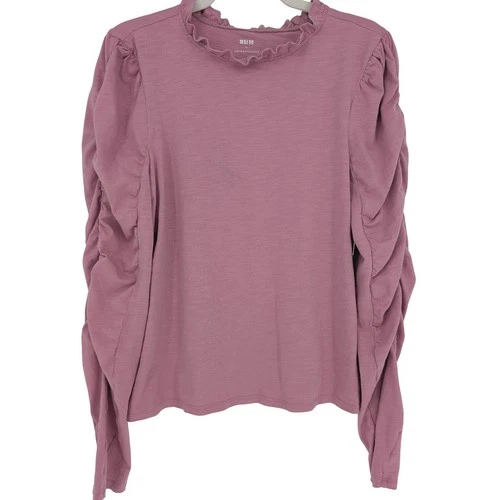 Maeve Anthropologie Ruched Long Sleeve Tee Large Mauve Ruffle Neck Coquette Boho