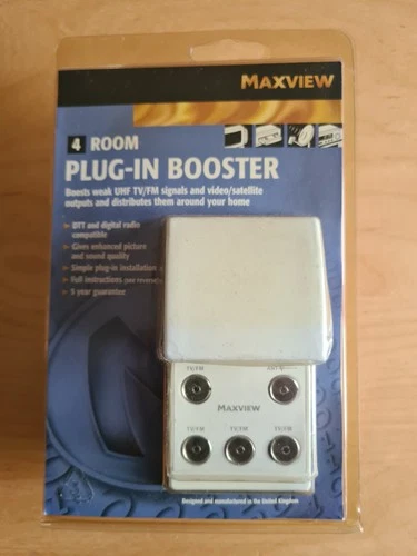 Easy Plug-In MAXVIEW TV/FM Signal Booster - 4 Channel / 4 Room Distribution