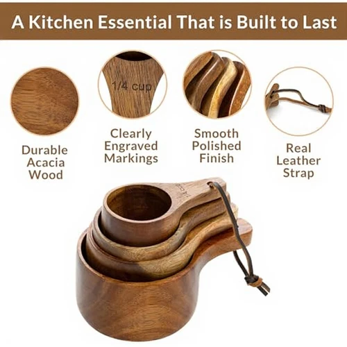 Measuring Spoon and Cup Set Crafted from Acacia Wood for Honey Coffee and Sugar