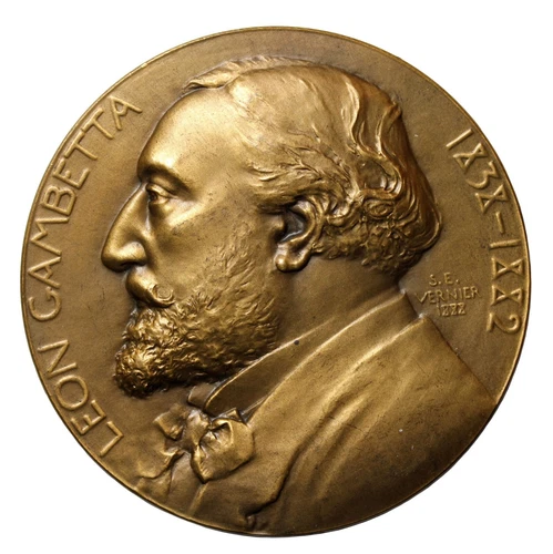 France 1888 Leon Gambetta Monument Dedication Bronze Medal Book Plate Piece