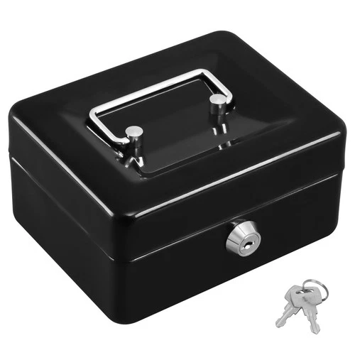 KYODOLED Cash Box with Key,Small Safe Lock Portable Small, Black