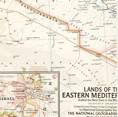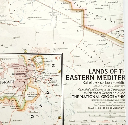 1959 Middle East Eastern Mediterranean Map National Geo Israel 24.75 x 19" F13F