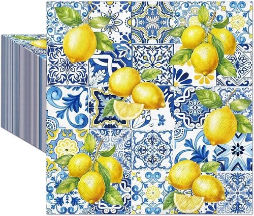 40 Napkins Design Lemon 25x25cm Cocktail Decor Spring Summer Party Decor