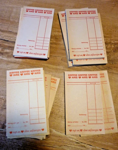 Coffee HAG waiter slip, receipt, 1960s, Eduscho, Tchibo, Melitta, Azul
