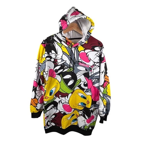 Looney Tunes Hooded Jacket Members Only Medium Colorful Fleece Lining Sweater