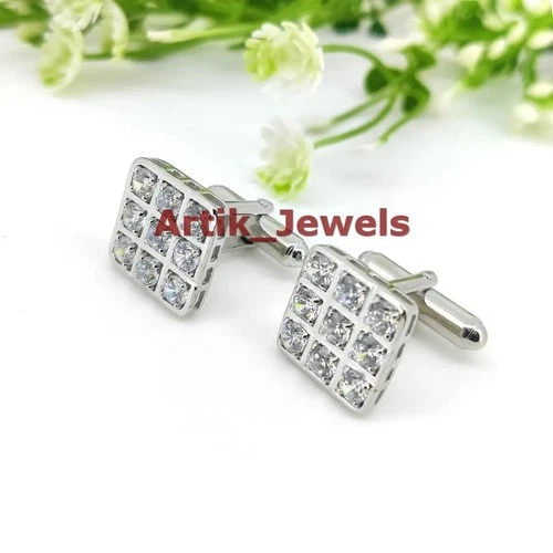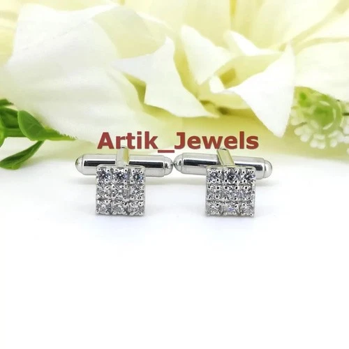 White Moissanite With 18k White Gold Plated 925 Sterling Silver Cufflink #2122