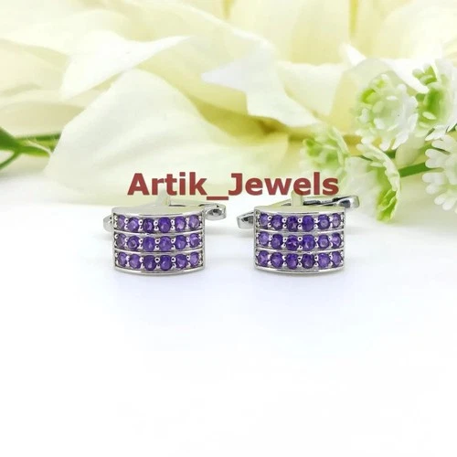 Natural Amethyst Gemstone with 925 Sterling Silver Cufflink #1744