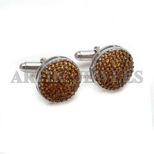 Natural Citrine Gemstone with 925 Sterling Silver Cufflink #2100