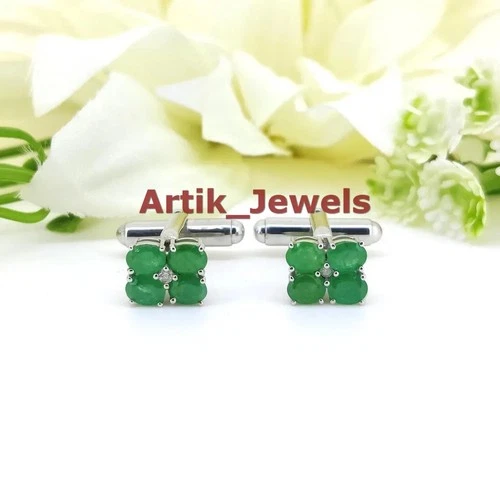 Lab Grown Emerald Gemstone with 925 Sterling Silver Cufflink #2156