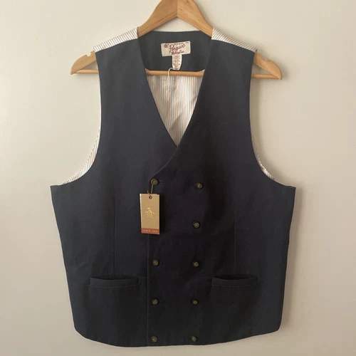 PENGUIN Waistcoat Sz 2XL Navy Blue Cotton Double Breasted Occasion Wedding Men
