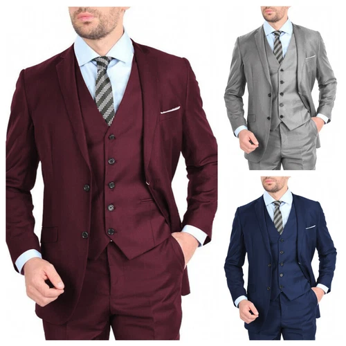 Men's Regular Fit 3 Piece Solid Suit Blazer Vest Pants Formal Occasions Wedding