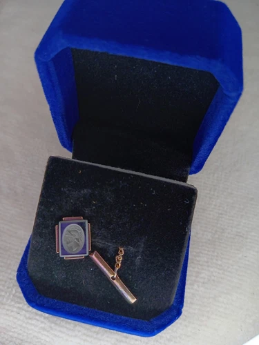 Vintage Cameo Tie Tack Lapel Pin Gold Tone Roman Profile Men’s Jewelry