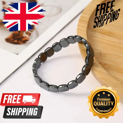 Hematite Magnetic Bracelet Men Black Stone Beaded Stretch Healing Jewelry -UK
