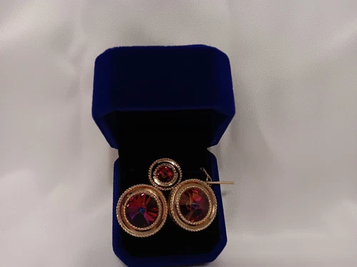 Vintage Aurora Borealis Rhinestone Cufflinks Tie Tack Set Gold Tone Jewelry