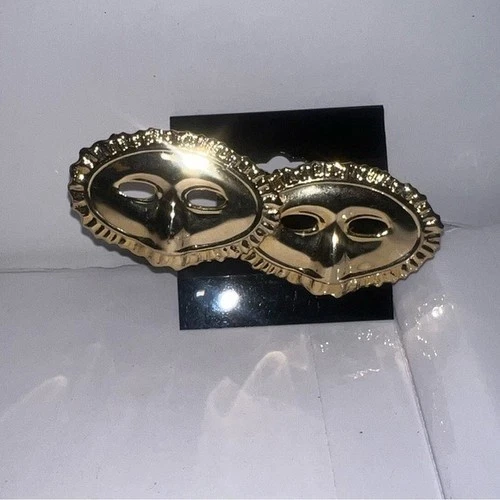 Gold Tone Masquerade Mask Brooch Pin Pair Costume Party Jewelry