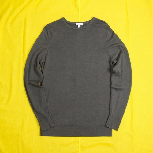 Sunspel Mens Green 100% Merino Wool Fine Knit Crew Neck Jumper Size Small