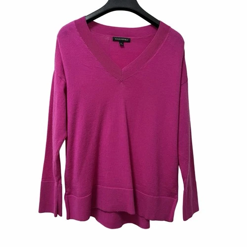 Banana Republic Womens Merino Wool V Neck Sweater Size M Magenta Pink Luxury