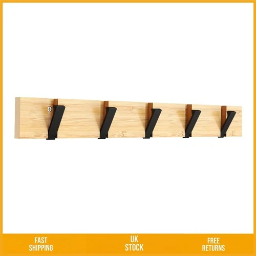 Elegant Retractable Wall Mounted Bamboo Coat Rack 5 Folding Hooks 42cm Black