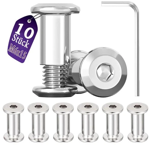 10 pieces connecting screws M6x15mm, socket screws, stainless steel A2 V2A, furniture...