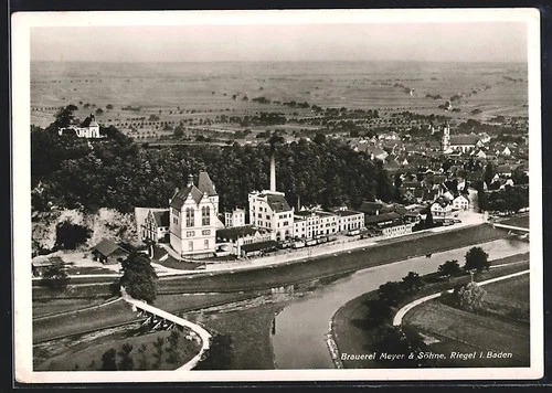 Postcard Riegel/Baden, brewery Meyer & Söhne with local view and river from the Vogels
