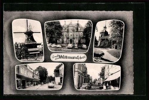 Postcard Wittmund/East Fr., Drostenstrasse with shops, district house, Siuts-Mhle 1966