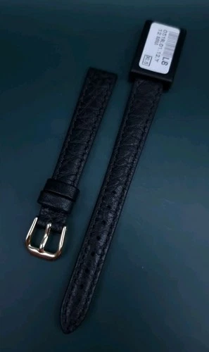 12mm CONDOR CAMEL GRAIN GENUINE LEATHER BLACK WATCH STRAP, GOLD BUCKLE BNWT