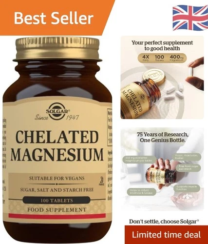 Highly Absorbable Chelated Magnesium - Reduces Tiredness for Kids - 100 Tablets