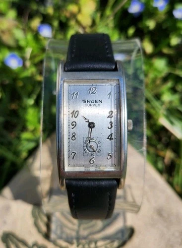 Gruen Curvex Quartz Vintage Style 5 Micron Silver/Black 22mm Men's Tank Watch!!!