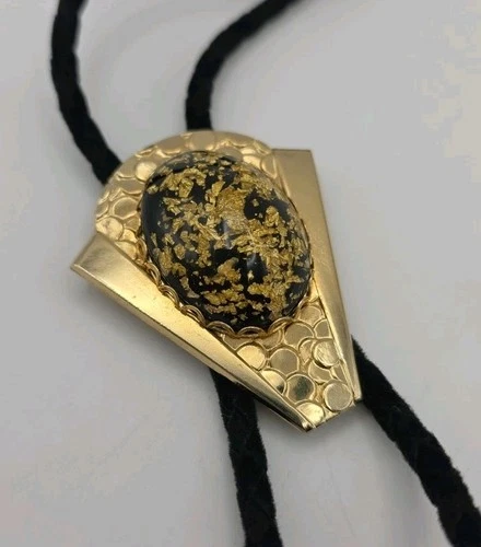 Vintage Gold Fleck Oval Cabochon Resin Bolo Tie Mid Century Western Gothic Bold