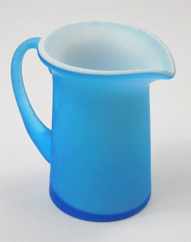 Vintage Handblown Frosted Blue White Cased Art Glass Creamer Mini Pitcher 3.5"
