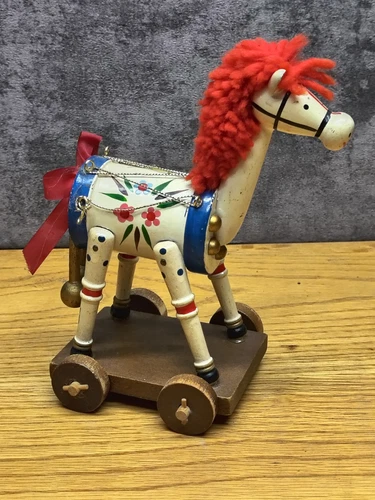 Vintage Hand Painted Wooden Rolling Horse
