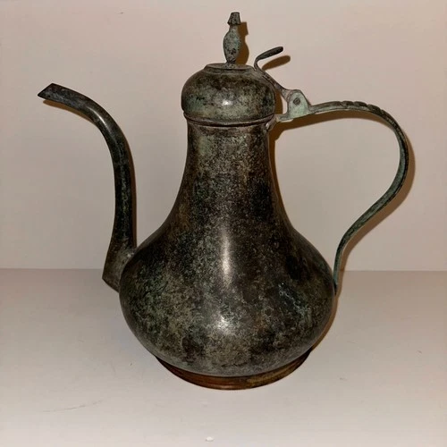 Rare VTG Antique Copper Middle Eastern Handmade Dallah Coffee Tea Pot Ewer 11"