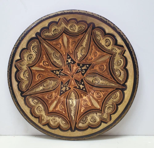 Vintage 1940s Turkish Copper Etched Artisan Hand Made Tray Middle Eastern