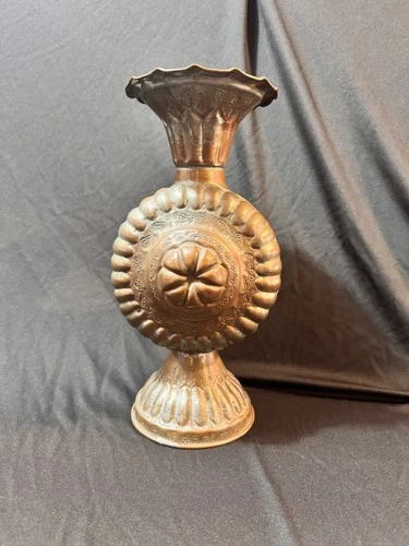 Vin Hand Embossed Copper Metal Egyptian Vase Vessel Pot Middle Eastern Art Egypt