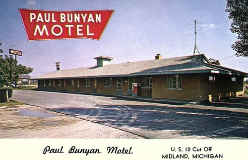 1960s MIDLAND MICHIGAN PAUL BUNYAN MOTEL US 10 COKE BOK CHROME POSTCARD P1090