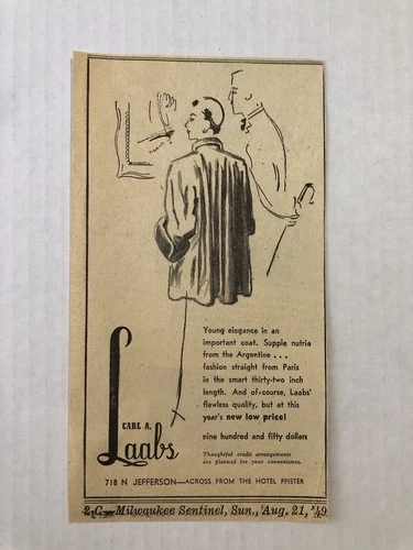 1940’s Milwaukee Store Carl A Laabs Newspaper ad