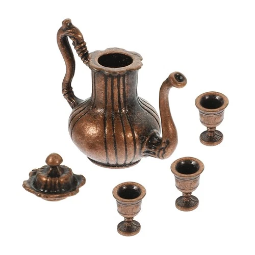 Miniature Tea Set Alloy Doll House Accessories Mini Teapot Cup Set Decoration