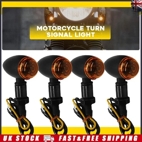 4x Aluminum Motorcycle Indicators Turn Signals Light Amber Motorbike Bullet Bulb
