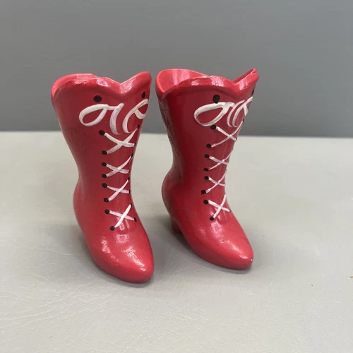 Red High Heel Miniature Ceramic Porcelain Boot Figurines Hand Panted Vintage